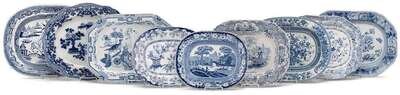 Nine Staffordshire blue and white transfer printed pottery meat platters 19th century