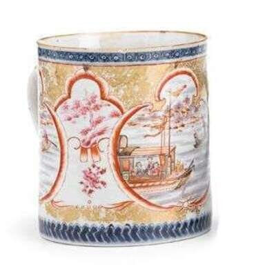 Large Chinese export painted and gilt porcelain mug late 18th century