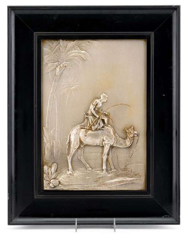 Pair of silvered metal orientalist plaques early 20th century