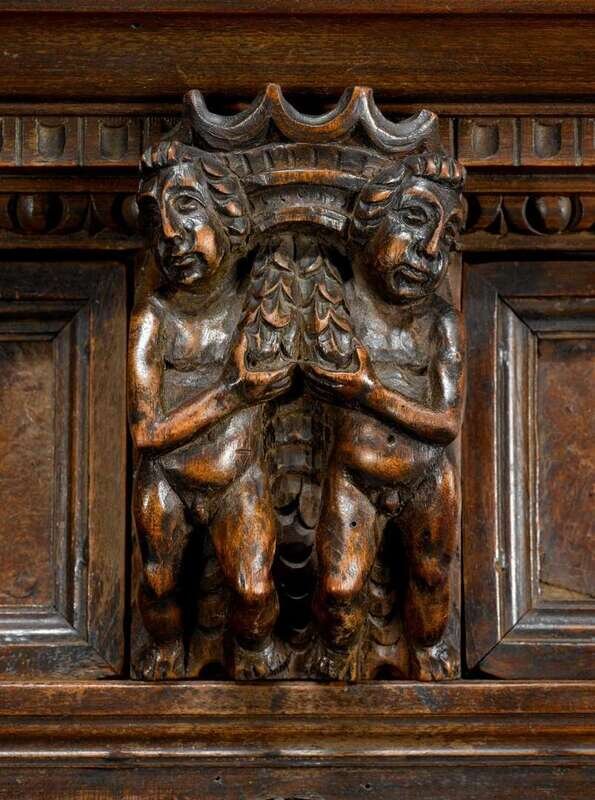 Italian Renaissance style walnut 'Bambocci' cabinet 19th century, possibly incorporating earlier elements