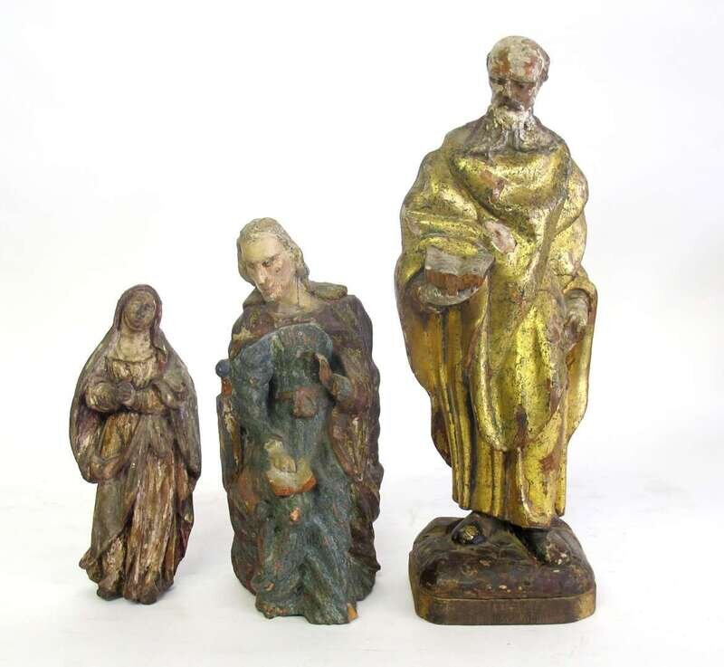 Three carved and polychrome figures of saints 18th/19th century