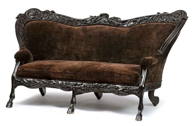 Unusual Victorian Black Forest type carved and ebonized sofa late 19th century