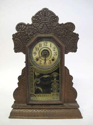 Ingraham Victorian oak mantle clock bristol, connecticut, late 19th century