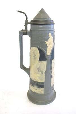 Mettlach cameo pewter mounted stein 1902
