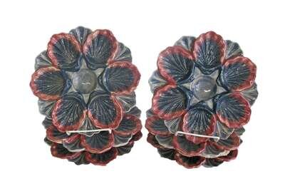 Set of six glazed stoneware oyster plates 20th century