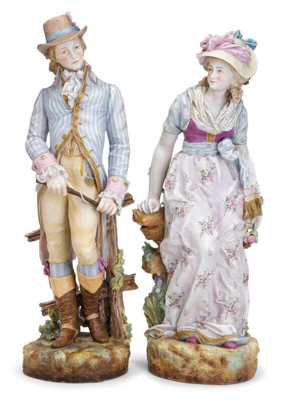 Pair of large German bisque figures late 19th century