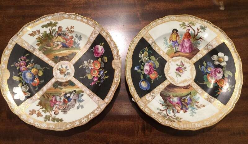 Pair of Meissen painted and gilt porcelain cabinet plates late 19th century