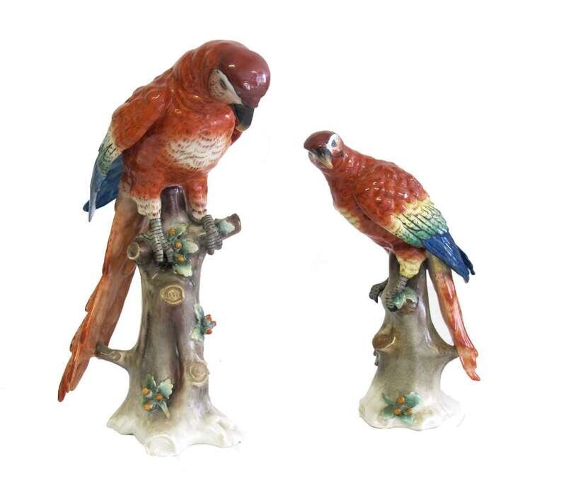 Two Sitzendorf hand-painted porcelain parrots late 19th/early 20th century