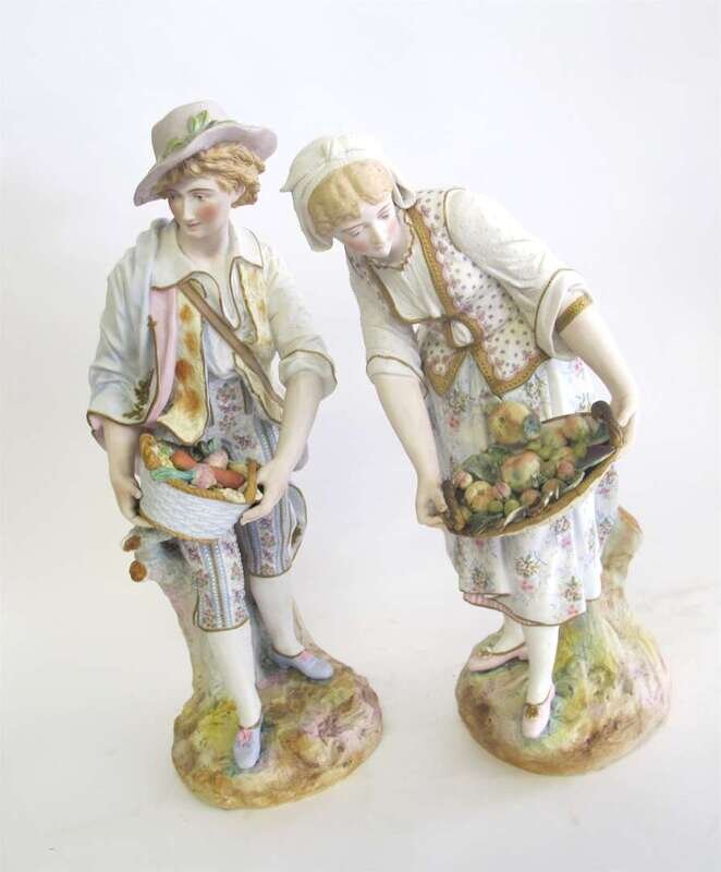 Pair of bisque porcelain peasant figures circa 1900