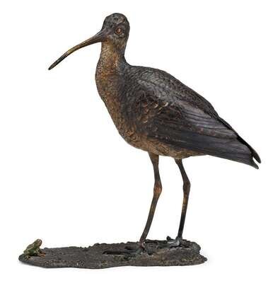 Depicting a snipe and frog atop rockform base, underside with impressed amphora mark, geschutzt, 2.