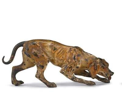 Cast and painted to depict a scenthound on the hunt, apparently unmarked.