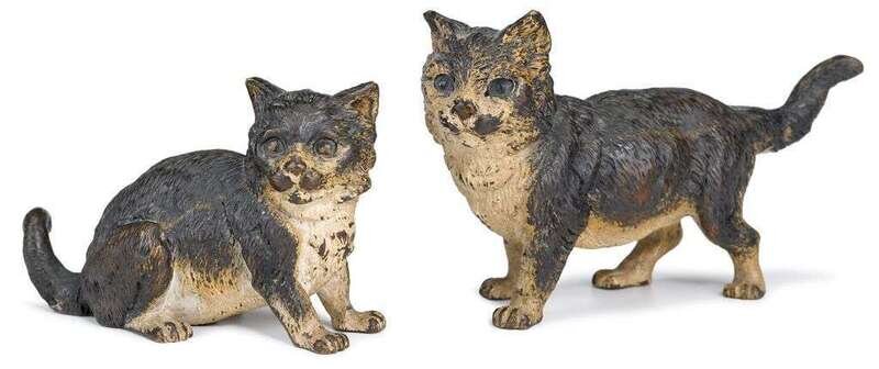 Cast and painted to depict kittens at play, molded GESCHUTZT mark to tails.
