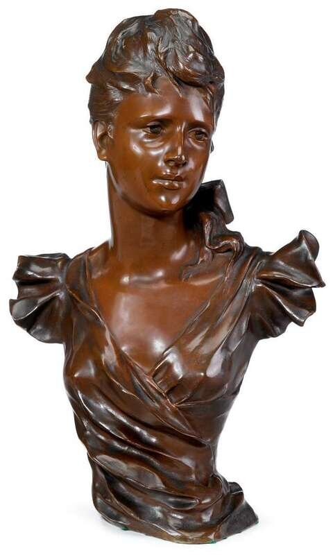Bronze bust, reddish-brown patina, modeled as a young maiden, signed "George Coudray", impressed 2583 E.V.