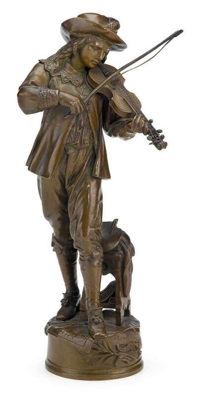 Jean-Louis Gregoire (French, 1840-1890) bronze figure of a violinist late 19th century, marked tiffany & co.