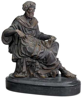 Bronze figural statue of a Greek philosopher possibly aristotle, 19th century