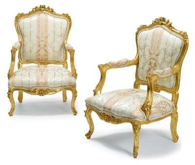 Pair of Louis XV style giltwood fauteuil à la reine 20th century