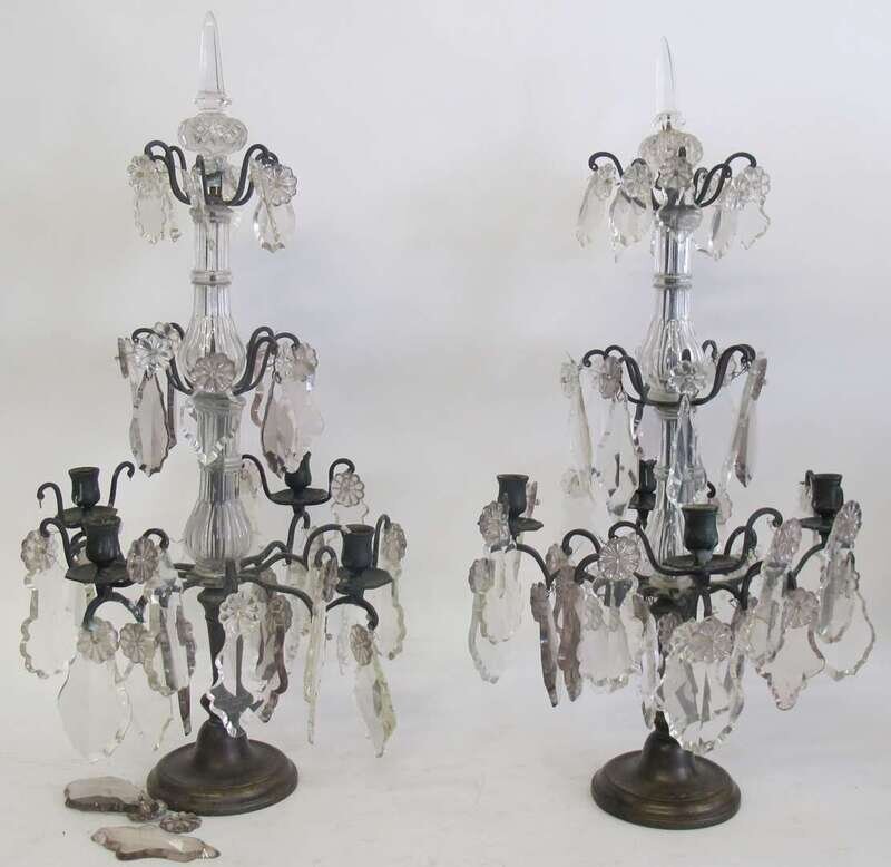 Pair of bronze and luster candelabra late 19th/early 20th century