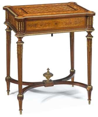 Fine French Louis XVI style gilt bronze mounted fruitwood marquetry inlaid poudreuse tahan, paris, second half 19th century