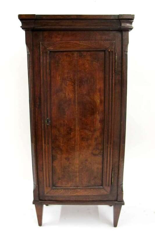 The achitectural rectangular cornice over single panelled door with fluted sides, raised on square tapering feet.