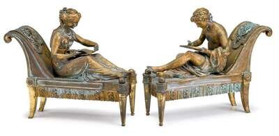 Pair of figural Louis XVI style gilt bronze chenets bouhon frères, paris, circa 1885