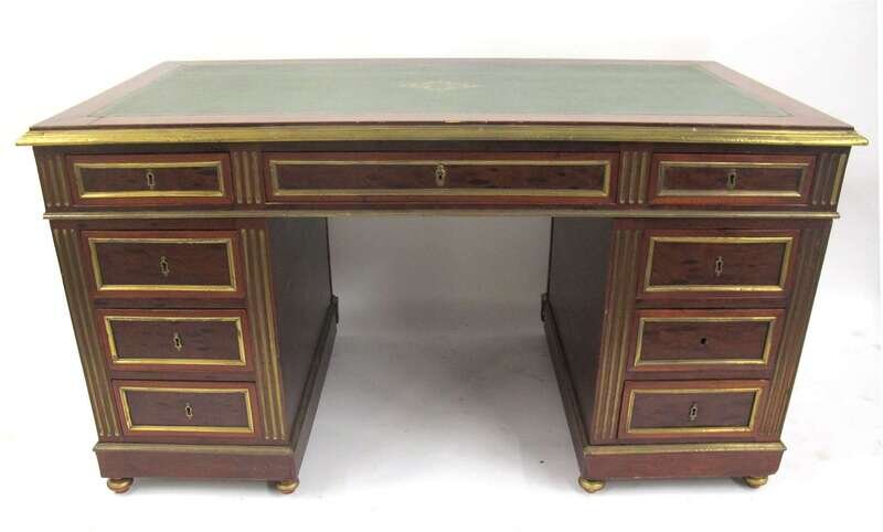 Louis XVI style brass mounted and parcel gilt mahogany partner's desk early 20th century