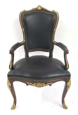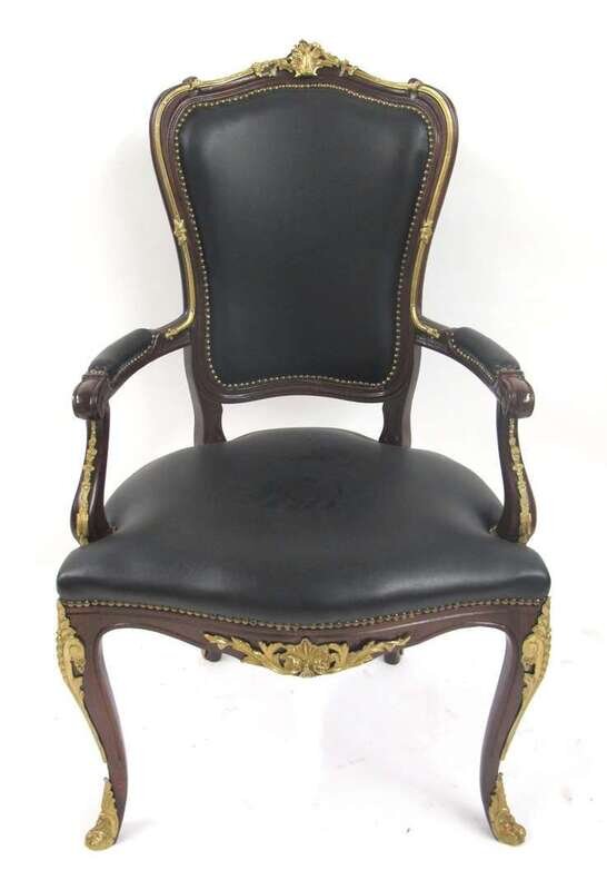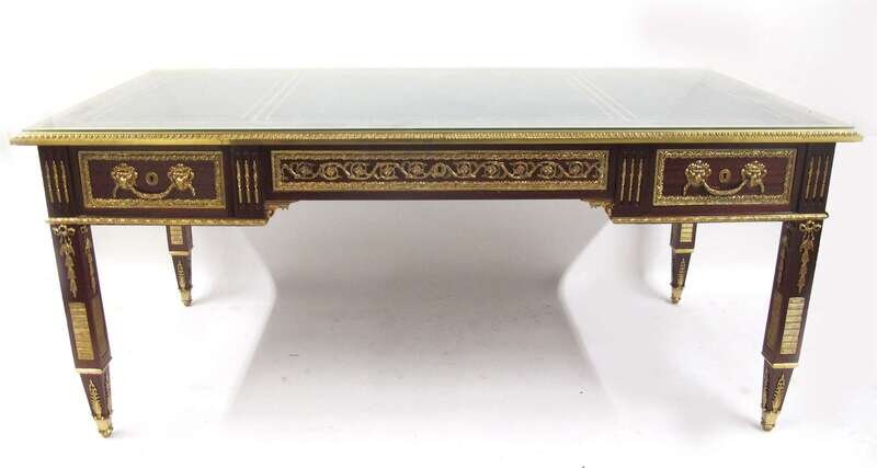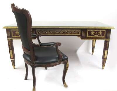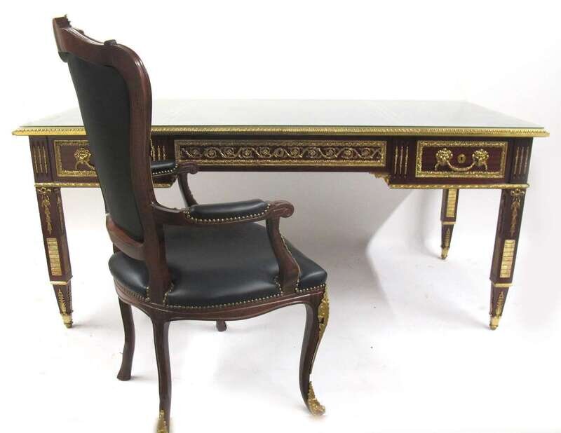 Louis XVI style gilt metal mounted mahogany partner's desk and armchair late 20th century