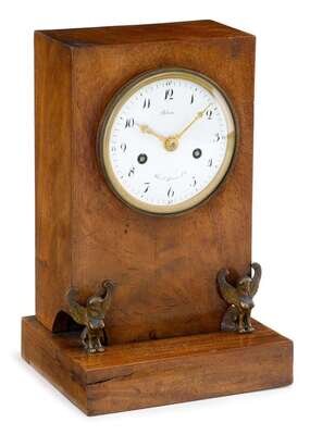 French Empire mahogany and sphinx mounted mantle clock 19th century, signed blanc, paris