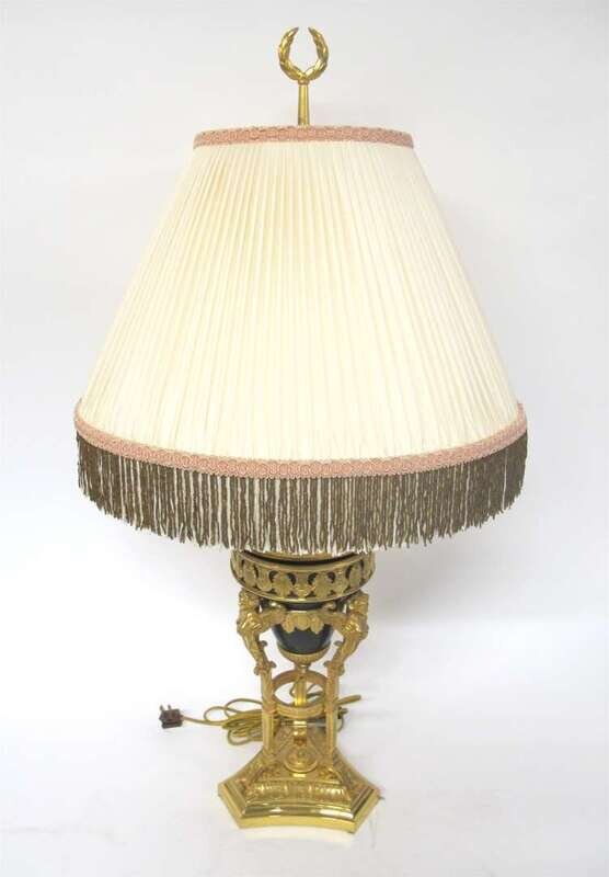 Empire style gilt brass and patinated metal table lamp