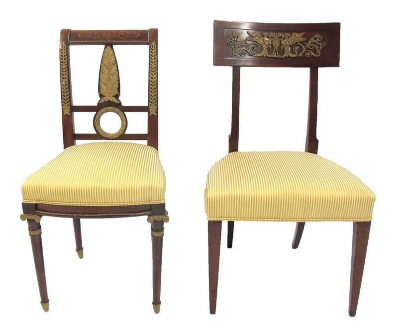 Two French Empire gilt bronze mounted side chairs first half 19th century