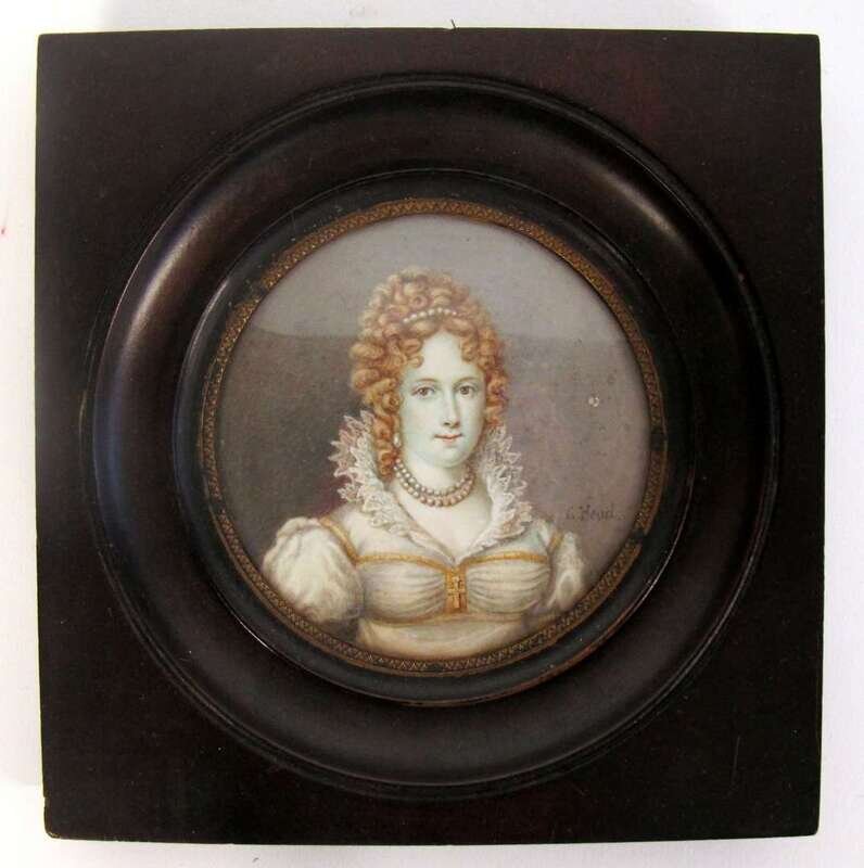 Hand-painted portrait miniature on ivory of Adelaide Amelia Louise Theresa Caroline, Duchess of Clarence signed g. head, english, circa 1830