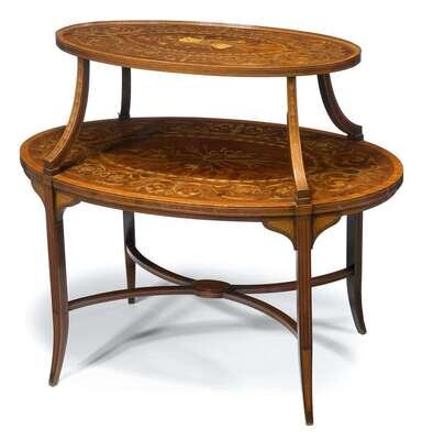 Adam style mahogany and marquetry inlaid two-tier table 19th century