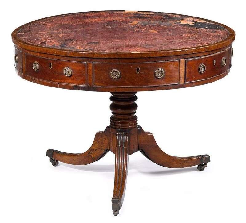 Leather inset mahogany drum-top library table early 19th century