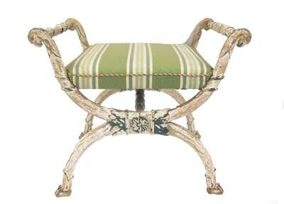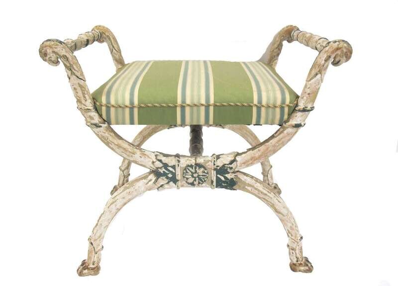 Regency style carved and painted X-frame stool