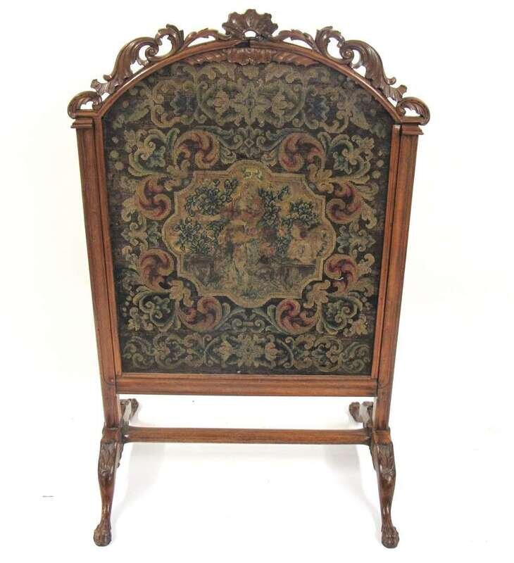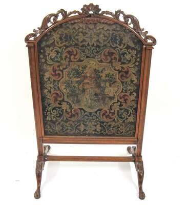 Victorian petit point tapestry panel and carved walnut firescreen 19th century