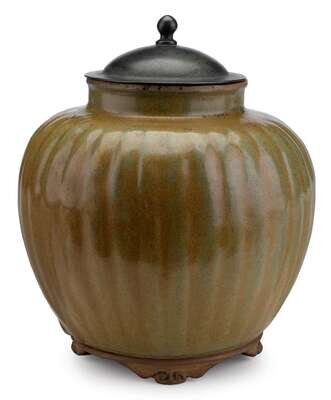 Chinese celadon glazed earthenware melon-form jar possibly song dynasty