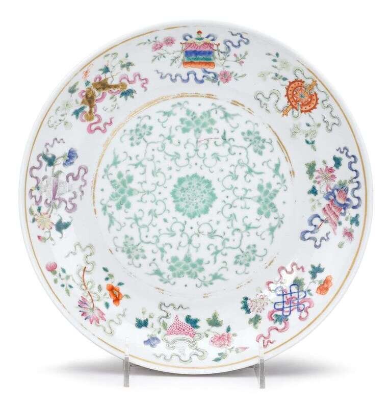 Chinese famille rose enamelled porcelain 'bajixiang' plate tongzhi mark and of the period