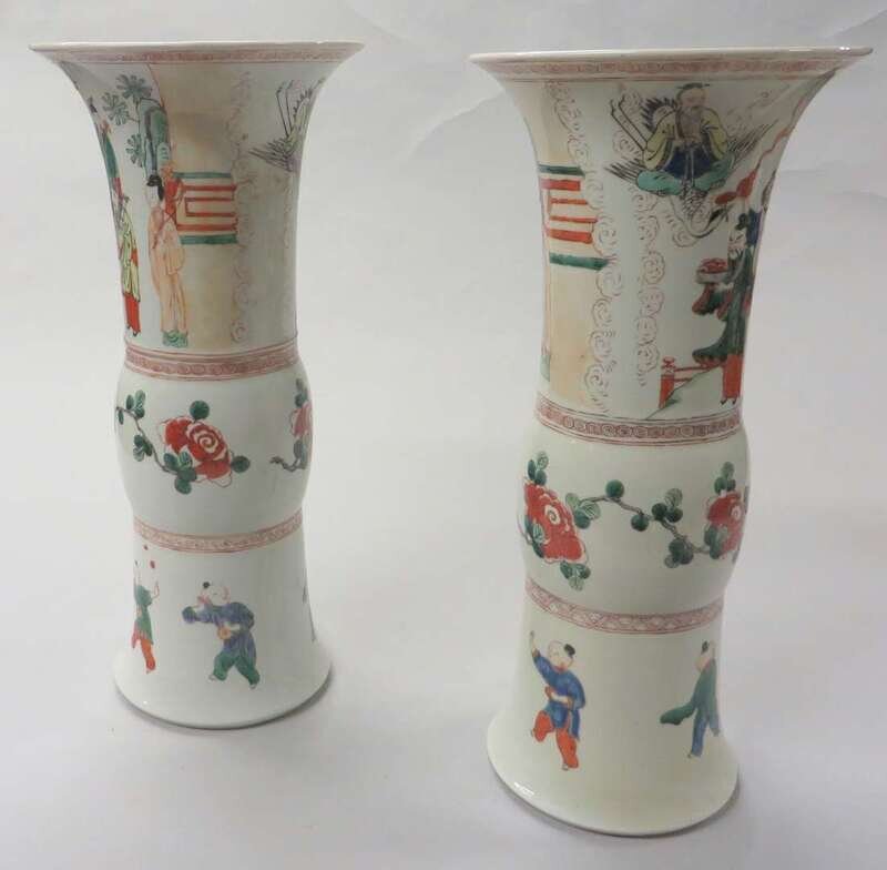 Pair of Chinese wucai enameled gu-form vase 19th century