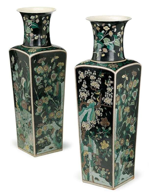 Large pair of Chinese famille noire porcelain vases late 19th century