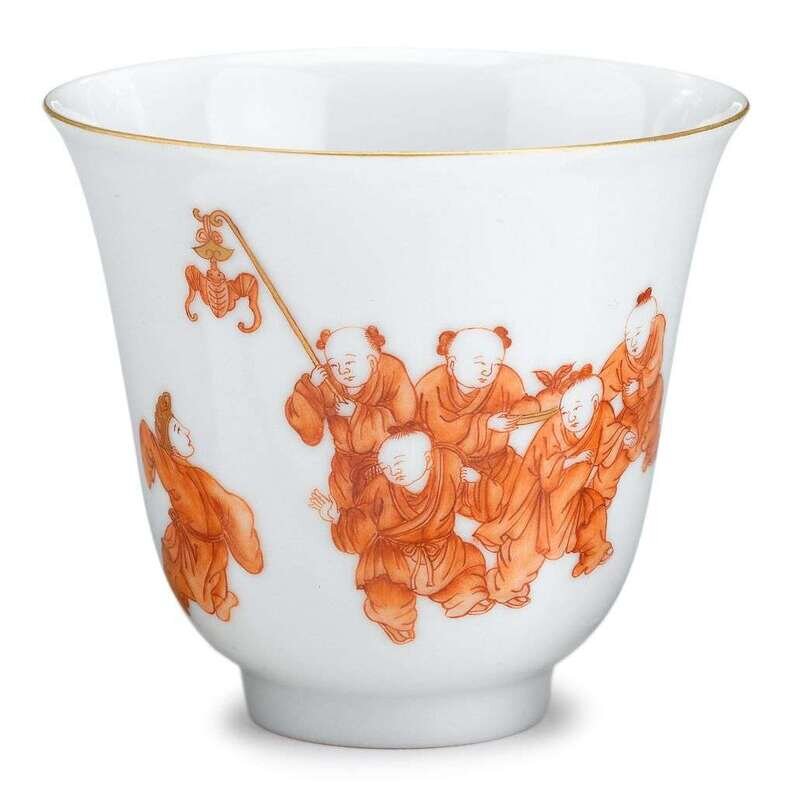 Chinese iron red painted porcelain cup shendetang mark