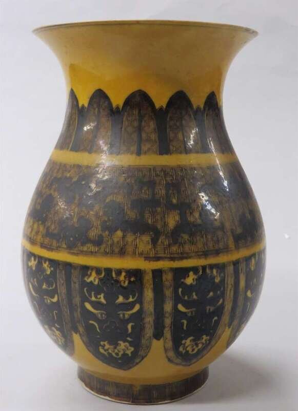 Chinese yellow glazed and brown decorated ovoid vase qianlong mark, guangxu period