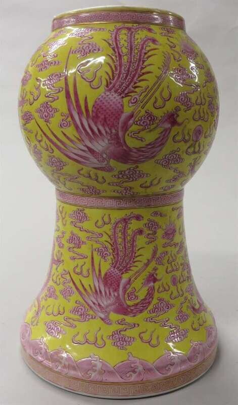 Chinese famille rose yellow ground 'dragon and phoenix' vase qing dynasty