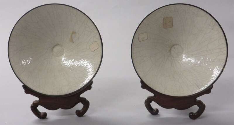 White glaze with craquelure, the glaze trimmed neatly around mouth leaving an ink-painted pottery rim, the base reveals the swirling pattern of the porcelain and is adorned with a splash of glaze.