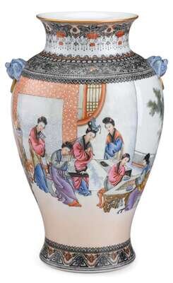 Chinese painted-enamelled porcelain 'beauties' vase republic period