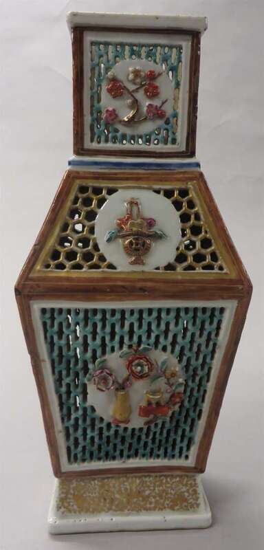 Chinese famille rose reticulated faceted vase 19th / 20th century