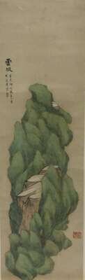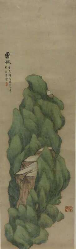 Hanging scroll, ink and color on paper; titled "yun gen"; 40 1/4 x 10 3/4 inches