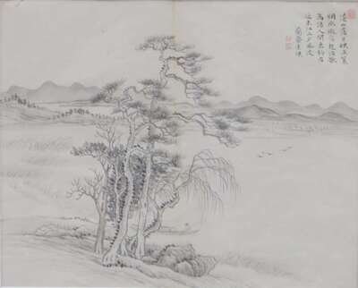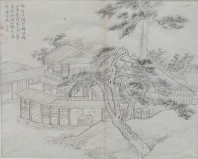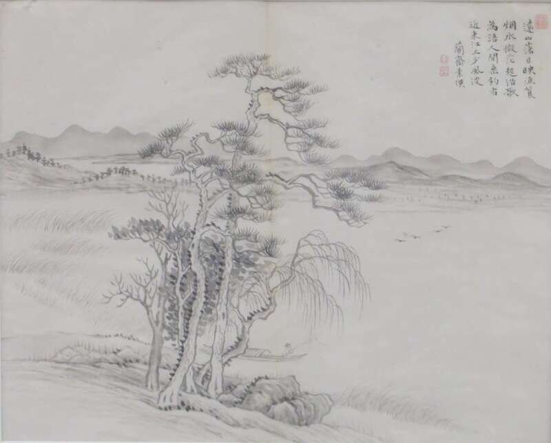 KONG SU YING QING DYNASTY Landscape and village scene
