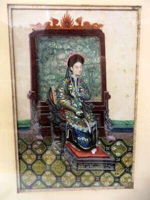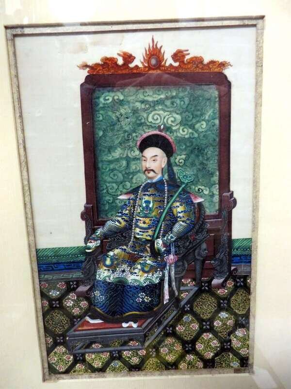 Depicting emperor and empress figures seated before floor screens dressed in magnificent robes.