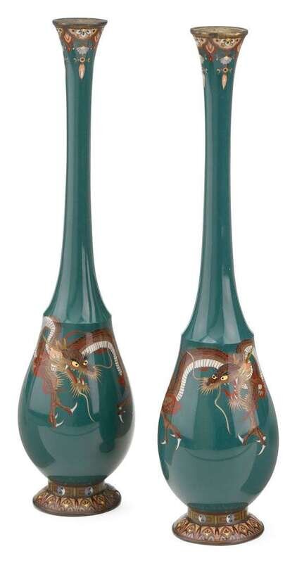 Pair of Japanese cloisonne enamel vases tameshiro style