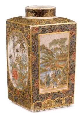 Fine Japanese Satsuma earthenware square-form bottle yabu meizan, meiji period