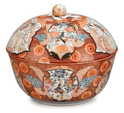 Large Japanese Kutani bowl and cover late 19th century